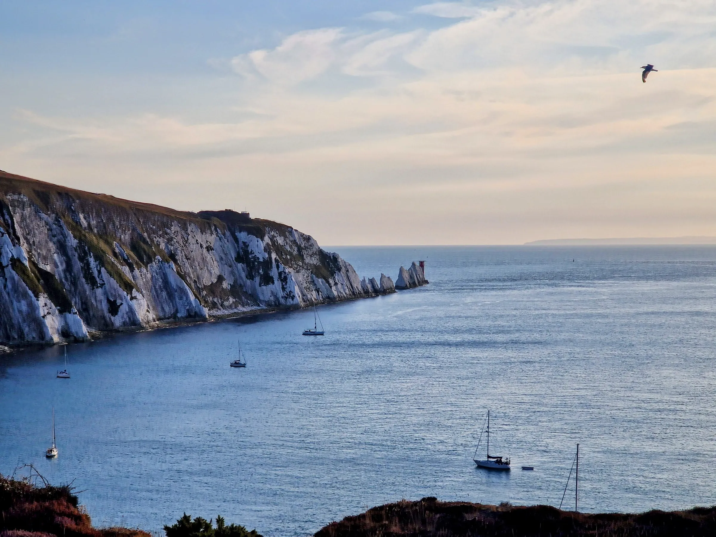 By late afternoon, we arrived at the Needles, the islandโs most iconic landmark. Jagged chalk stacks jutting out into the sea, theyโre best seen from the headland.
